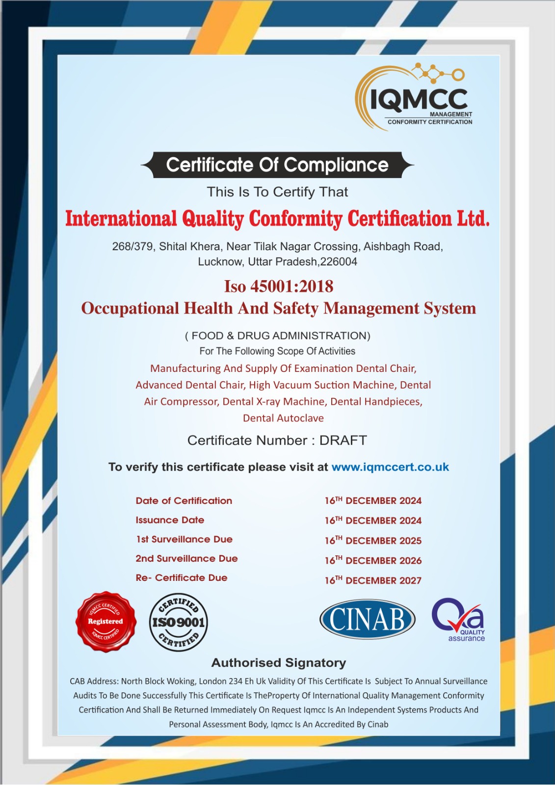 | JAIQAK024 | 11 Aug 2025 | 10 Aug 2028 | 10 Aug 2026 | 10 Aug 2027 | Download | ISO 9001:2015 | JMSM ALLIED INDUSTRIES PRIVATE LIMITED |